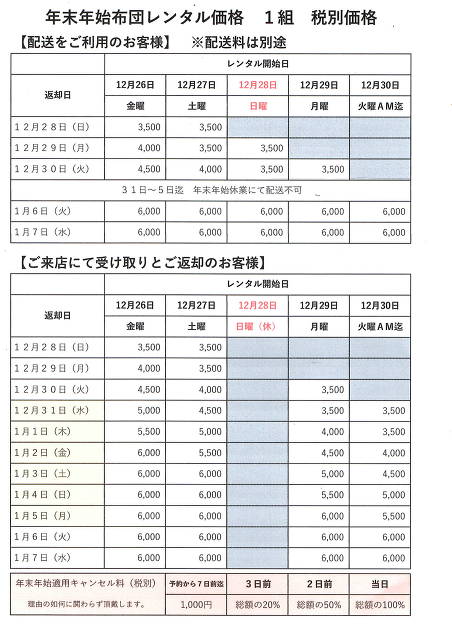 なお布団レンタルのご予約は12月1日から受け付けます。